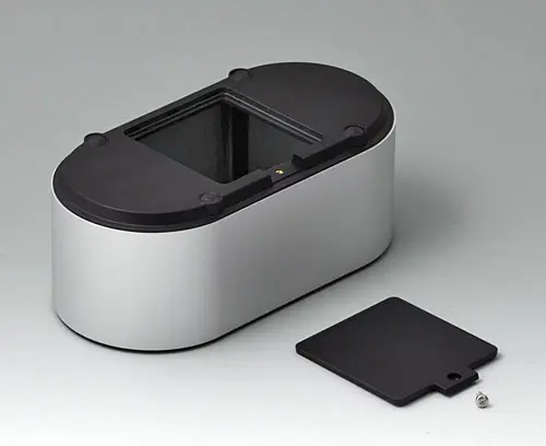 Boitier en quatre parties s’adaptant à de multiples domaines d’application. Cadre de base solide en aluminium, sablé par billes de verre et anodisé. Éléments en matériau plastique ASA+PC-FR offrant une bonne protection aux ultraviolets et résistance aux flammes. Bossages de fixation pour circuits imprimés et modules dans les parties supérieure et inférieure. Partie supérieure avec surface en creux pour la protection du clavier à membrane. Partie inférieure avec ouverture et couvercle à visser : pratique pour un compartiment pile ou pour accéder à l'intérieur, par ex. carte mémoire ou piles directement fixées sur le circuit imprimé. Kit compartiment piles pour quatre piles AA avec ressorts de contact, clips de pile, support de pile bouton et éléments de fixation au mur en accessoires.