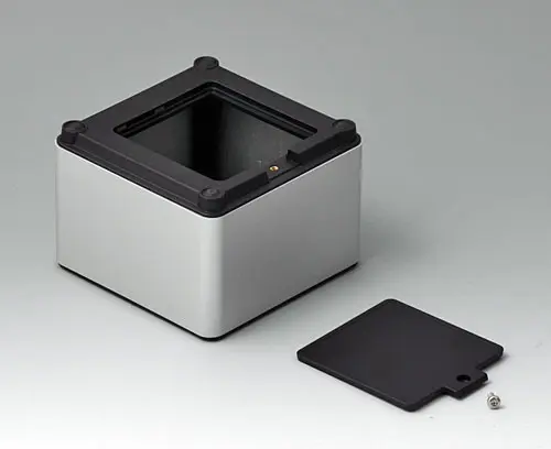 Boitier en quatre parties s’adaptant à de multiples domaines d’application. Cadre de base solide en aluminium, sablé par billes de verre et anodisé. Éléments en matériau plastique ASA+PC-FR offrant une bonne protection aux ultraviolets et résistance aux flammes. Bossages de fixation pour circuits imprimés et modules dans les parties supérieure et inférieure. Partie supérieure avec surface en creux pour la protection du clavier à membrane. Partie inférieure avec ouverture et couvercle à visser : pratique pour un compartiment pile ou pour accéder à l'intérieur, par ex. carte mémoire ou piles directement fixées sur le circuit imprimé. Kit compartiment piles pour quatre piles AA avec ressorts de contact, clips de pile, support de pile bouton et éléments de fixation au mur en accessoires.