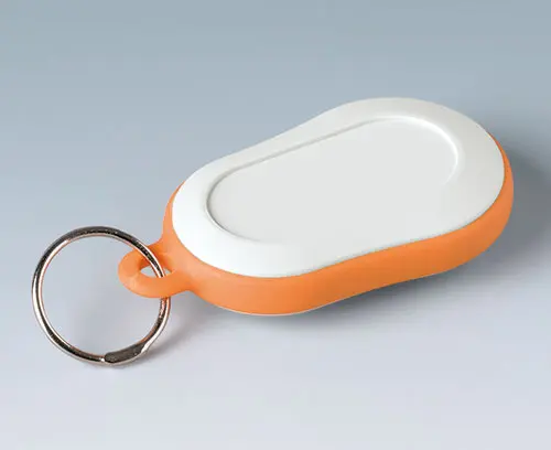 SMART-CASE XS Miniature case composed of 2 parts with eyelet hole for a keyring. Possibilities for fixing PCBs in base part. Polished front area for utmost effectiveness when exposed to infra-red light. Assembly of top and base part by screwing. Space for a 12 V round cell and small round cells.