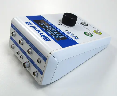 The device shown here is a biosignal simulator, which is used to calibrate and test sleep diagnostic equipment. For example, it is able to output an ECG signal or a sine wave to specific sockets.