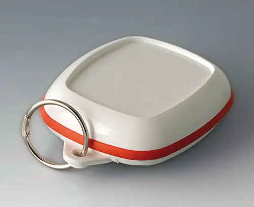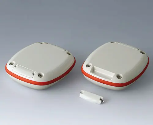 Modern small enclosure specifically designed for "wearable technologies". Three-part design consisting of highly polished top and bottom parts and a matt TPV sealing ring.