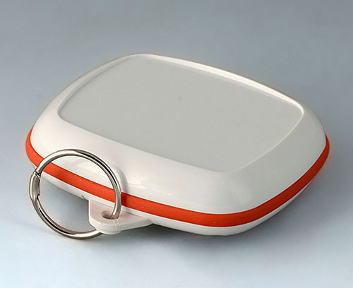 Modern small enclosure specifically designed for "wearable technologies". Three-part design consisting of highly polished top and bottom parts and a matt TPV sealing ring.