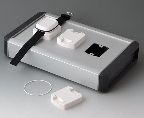 BODY-CASE M, with recess Modern small enclosure specifically designed for "wearable technologies". Three-part design consisting of highly polished top and bottom parts and a matt TPV sealing ring.