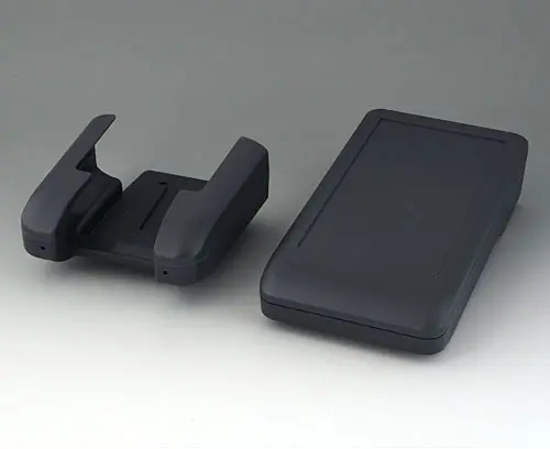 DATEC-COMPACT L 2-part compact hand-held enclosure with an ergonomic, robust design. Secure grip through finger recess in the bottom part. Recessed user area to protect the operating elements. Attachment domes for PCBs and components in the top and bottom parts.