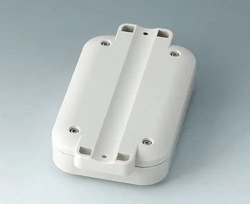 2-part plastic enclosure with flat top part. The bottom part has integrated flanges for quick wall mounting or for installation on pipes/round profiles. Robust design with proven tongue and groove connection. Screw connection with stainless steel screws and Torx drive. Fastening pillars for PCBs and components in the top and bottom parts.