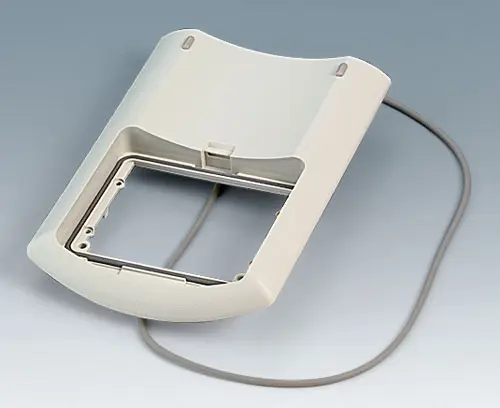 ERGO-CASE M, high Ergonomically shaped enclosure to wear on the body. Recessed operating area in order to protect the membrane keyboards. Plane area for individual interfaces at the end side. Battery compartment lid snapped-on (battery compartment as accessory).