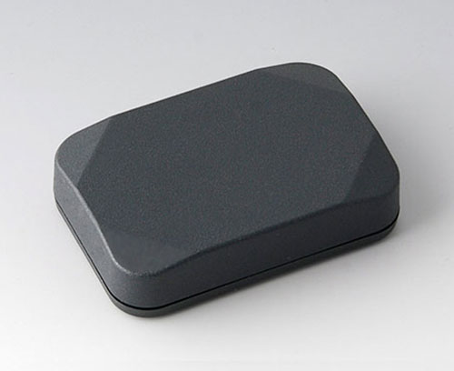 2-part plastic enclosure with flat top part, for universal use. Robust design with proven tongue and groove connection. Assembled with Torx stainless steel screws. Fixing supports for PCBs and components in the top and bottom parts. Fastening on the supports is by means of hot caulking.