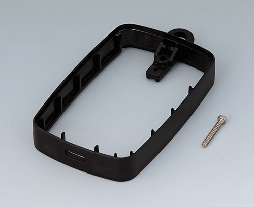 Bottom and top part EM Assembly unit: Modern, flat styling. Easy to carry. Recessed operating area for membrane keyboards. Fixing supports for PCBs/components in the case bottom. Intermediate ring EM as separate article necessary.