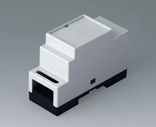 Enclosure for applications where larger components/assemblies need to be fitted inside. Different connection levels flat or high for individual configuration. Case corresponds to DIN 43880, size 1. Simple and quick assembly by locking onto DIN-rails EN 60715 TH35. Base part with fixing pillars for the PCB. Vertical and horizontal guides for additional PCBs.