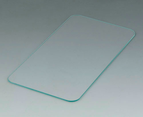 Glass panel E155 Glass panel for premium high-quality applications e.g. touch-screens/displays. Can be glued into the recessed top part for a perfect fit (accessory adhesive foil available). Printing on the rear is possible on request, to match the visible display section and to cover the adhesive surface. The matt ground sides with chamfered edges round off the high-quality impression.