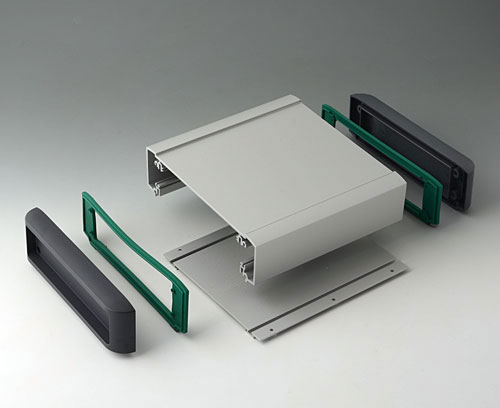 Horizontal guides and screw channels provided inside the case for fitting PCBs. Flat areas for easy installation of interfaces. Recessed area in the top for the protection of displays, membrane keypads and operating elements. Side covers with recessed area for protecting cables and connectors.