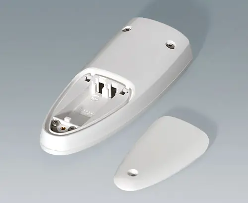 Three-piece hand-held enclosure with an ergonomic, robust design and a pleasant touch sensation. Offers protection up to IP 65 with sealing kit (accessory). Protection class IP 40 without sealing kit. Attachment pillars for PCBs and components in the top and bottom parts.